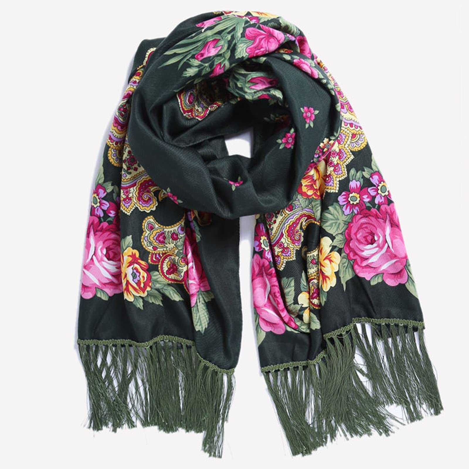 Description Babushka Écharpe pour femme Style traditionnel rétro ukrainien imprimé pompons longs Caractéristiques : L'écharpe est très douce, le fil de bonne qualité et le traitement du coton. Doux, confortable, chaud, proche de la peau, portez cette écharpe pour vous donner une chaleur durable en hiver. Les écharpes d'hiver sont douces, de poids moyen, enveloppez l'écharpe marron autour de n'importe quelle tenue et elle vous gardera au chaud tout au long de la journée. Créez un style tendance. Vous permet de vous démarquer dans la foule. Cette élégante écharpe d'hiver habillera toutes les tenues, que ce soit pour une occasion formelle ou décontractée, comme un mariage ou un dîner ou simplement comme écharpe de soirée d'automne ou d'hiver. Les écharpes pour femme sont un cadeau pour votre amoureuse, votre famille, vos amis ou vos collègues de travail comme cadeau d'anniversaire, de Noël et de Nouvel An, ou comme écharpe pour femme pour votre préoccupation et votre gratitude. L'écharpe est facile à assortir avec d'autres vêtements, tels qu'un vêtement d'extérieur, un pull, une veste et plus encore. Vous pouvez enrouler cette écharpe surdimensionnée autour des épaules comme un châle, ou la porter comme une écharpe épaisse, même comme décoration sur une chaise à bascule pour l'exposition. Description du produit : Style : décontracté, tendance. Genre : femme. Matière : coton. Dimensions : 190 x 66 cm. Contenu de l'emballage : 1 écharpe.