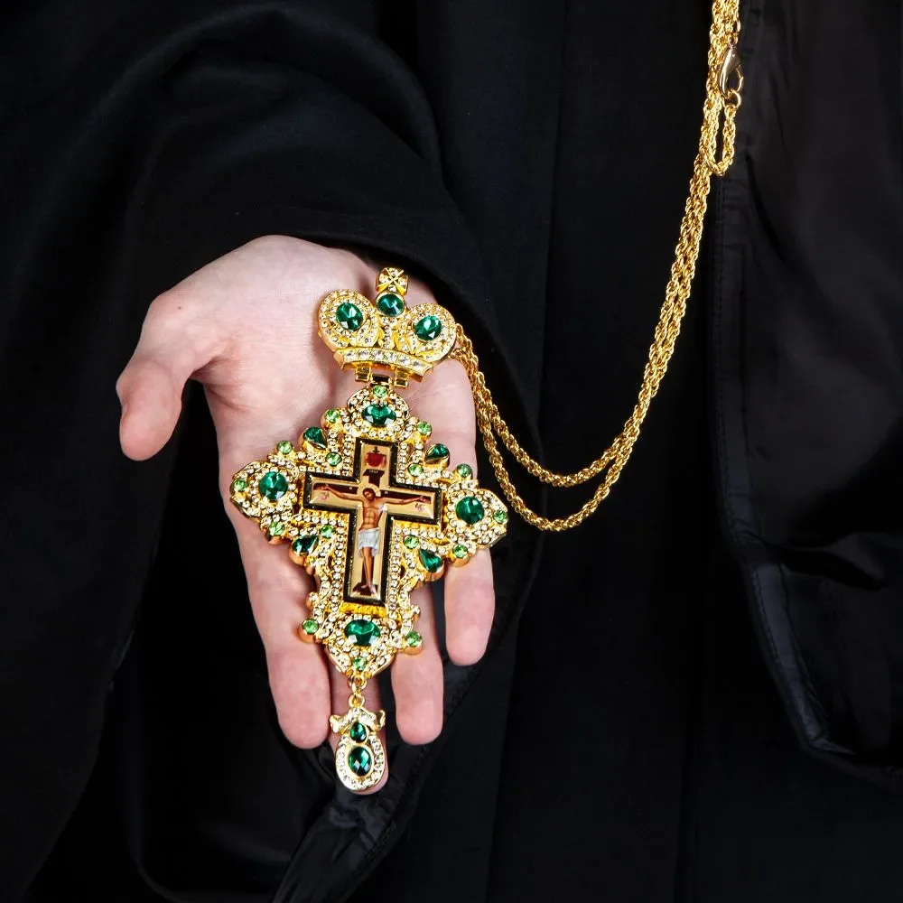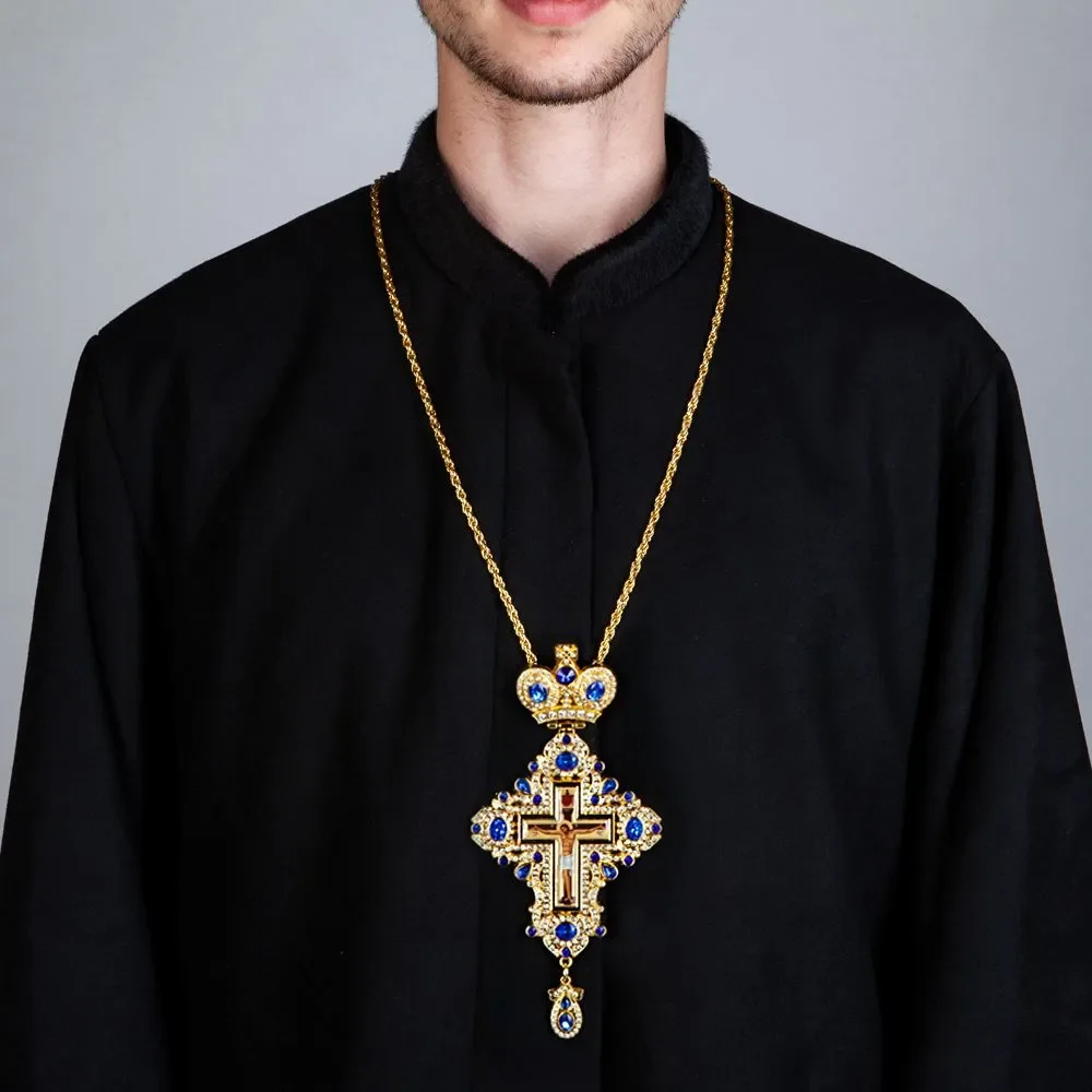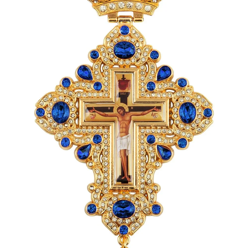 Grande croix orthodoxe pectorale Plaquée or avec Icône Jesus Alliage pour évêque/prêtre