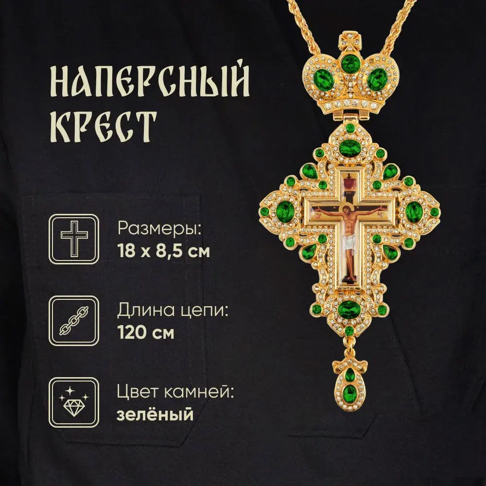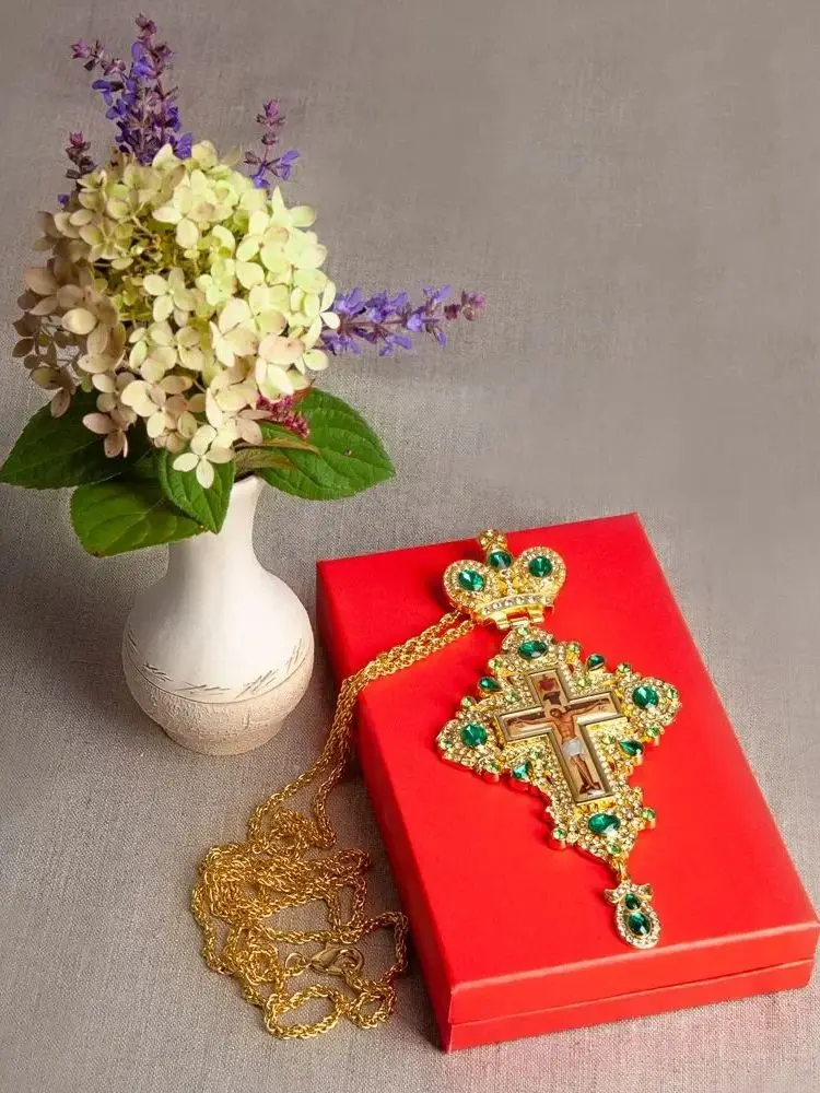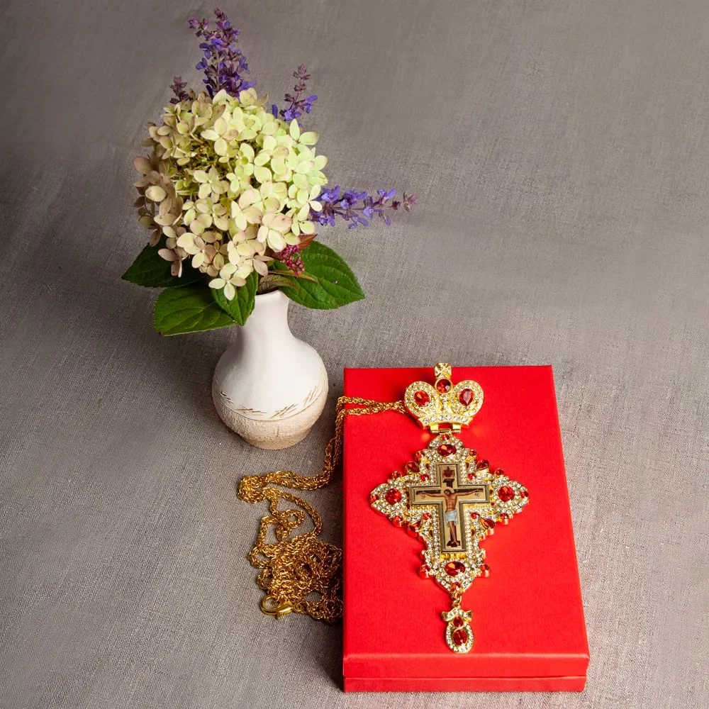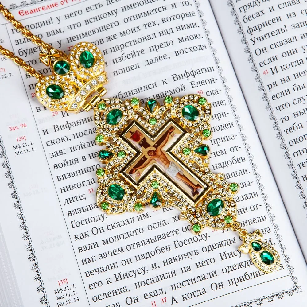 Grande croix orthodoxe pectorale Plaquée or avec Icône Jesus Alliage pour évêque/prêtre
